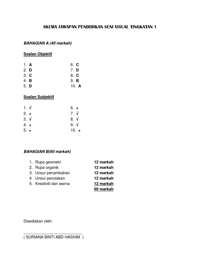 Skema Jawapan Pendidikan Seni Visual Tingkatan 1 Pdf